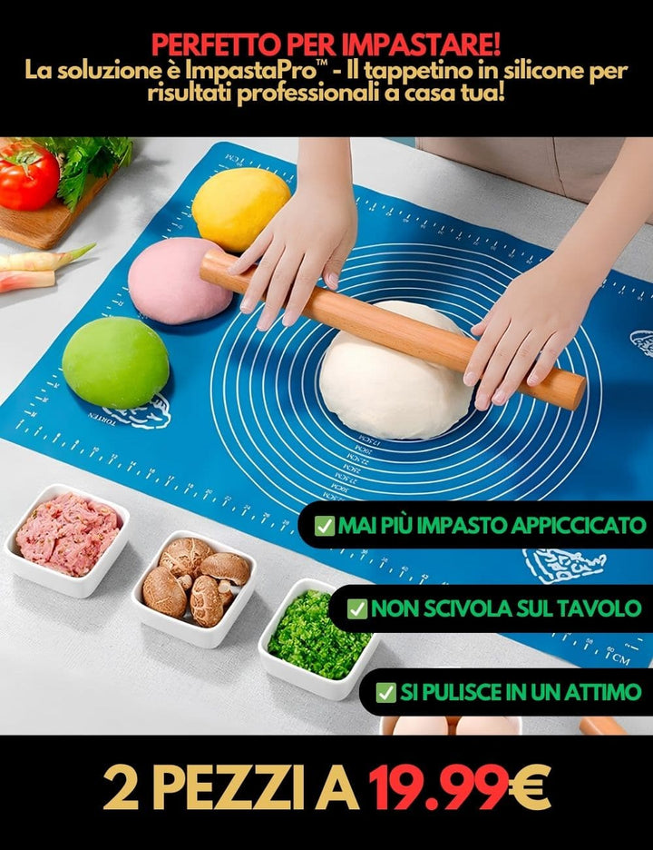Il tappetino originale ImpastaPro™ pronto all'uso. (Colore casuale in base alla disponibilità).